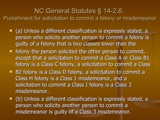 All felonies in North Carolina and assigned each felony to a specific offense class based on. DISCLAIMER This forum is intended for general questions and comments about the particular law or topic. 144 months in prison to life without parole.